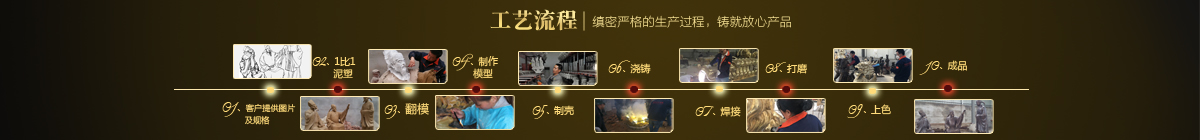 制作一件完美的鑄銅雕塑,最重要的步驟就是制作泥塑模型,然后再用工業(yè)硅膠拓印、翻模。所以泥塑的姿態(tài)、神情生動與否直接影響最終銅雕塑的品質(zhì)。所以我廠一直對泥塑模型的制作格外重視。我廠以雕塑為本,以藝術(shù)為根,挾中華文化之傳統(tǒng),偕歐陸藝術(shù)之風(fēng)韻,風(fēng)格獨特,盡顯淋漓盡致。我們本著大膽創(chuàng)新、勇于突破的精神,以追求卓越為導(dǎo)向,堅持寧缺勿濫為原則,并可依照您提供的要求,為您量身設(shè)計制作。我廠人才濟(jì)濟(jì),有智慧嚴(yán)謹(jǐn)?shù)墓芾戆嘧樱姸嗄贻p充滿激情、充滿創(chuàng)意的專業(yè)設(shè)計團(tuán)隊、有專業(yè)技術(shù)精湛的雕塑制作人才和專業(yè)的施工隊伍。他們不僅具深厚的文化藝術(shù)底蘊(yùn),更汲取當(dāng)代雕塑精華,博采眾家之長,作品既有嚴(yán)肅莊重寫實題材,也有輕松前衛(wèi)的抽象題材,表現(xiàn)手法上浪漫主義中不乏樸實,現(xiàn)實主義中蘊(yùn)涵著激情,設(shè)計理念貫穿古今、融匯中西,深刻詮釋著藝術(shù)的精髓,把古典主義和后現(xiàn)代主義完美的融合,將雕塑藝術(shù)演繹為力的凝聚、美的體現(xiàn),讓人們感受到的不僅是一種藝術(shù)的浪漫與優(yōu)雅、粗獷與悲壯、更是豐富的優(yōu)秀藝術(shù)寶藏和文化傳統(tǒng),讓您在藝術(shù)與文化中穿流,在時空中飄蕩,使靈魂在藝術(shù)的海洋洗禮。 MORE+